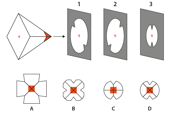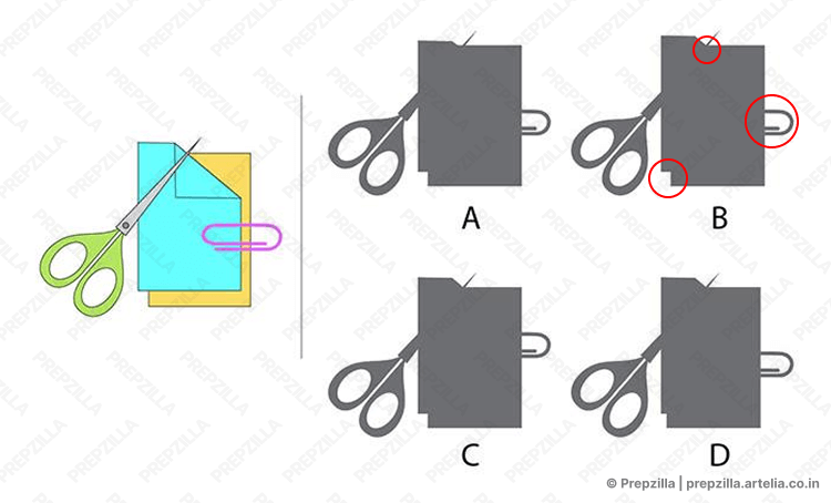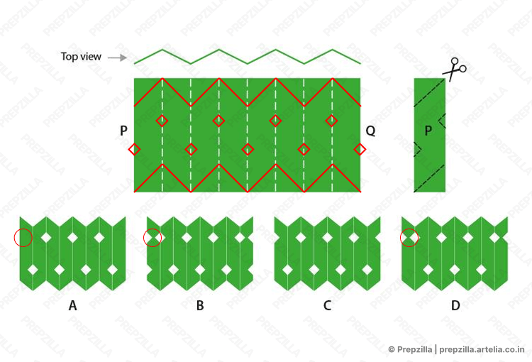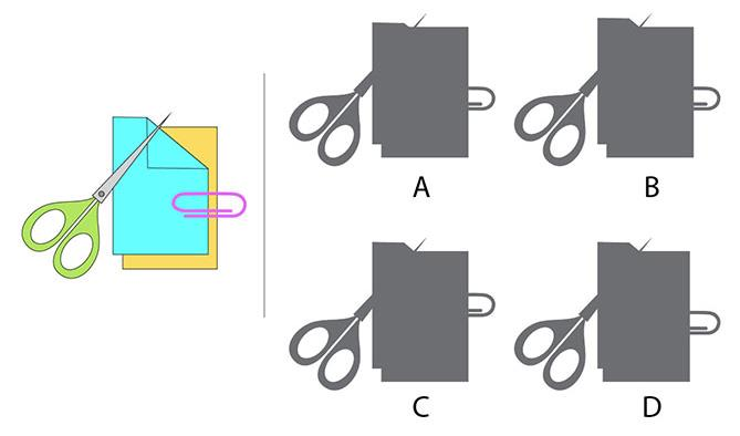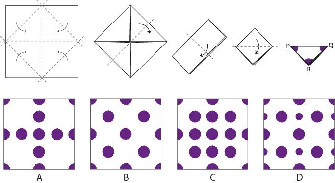Visualizing result when paper is folded, cut, then unfolded to reveal symmetrical pattern.